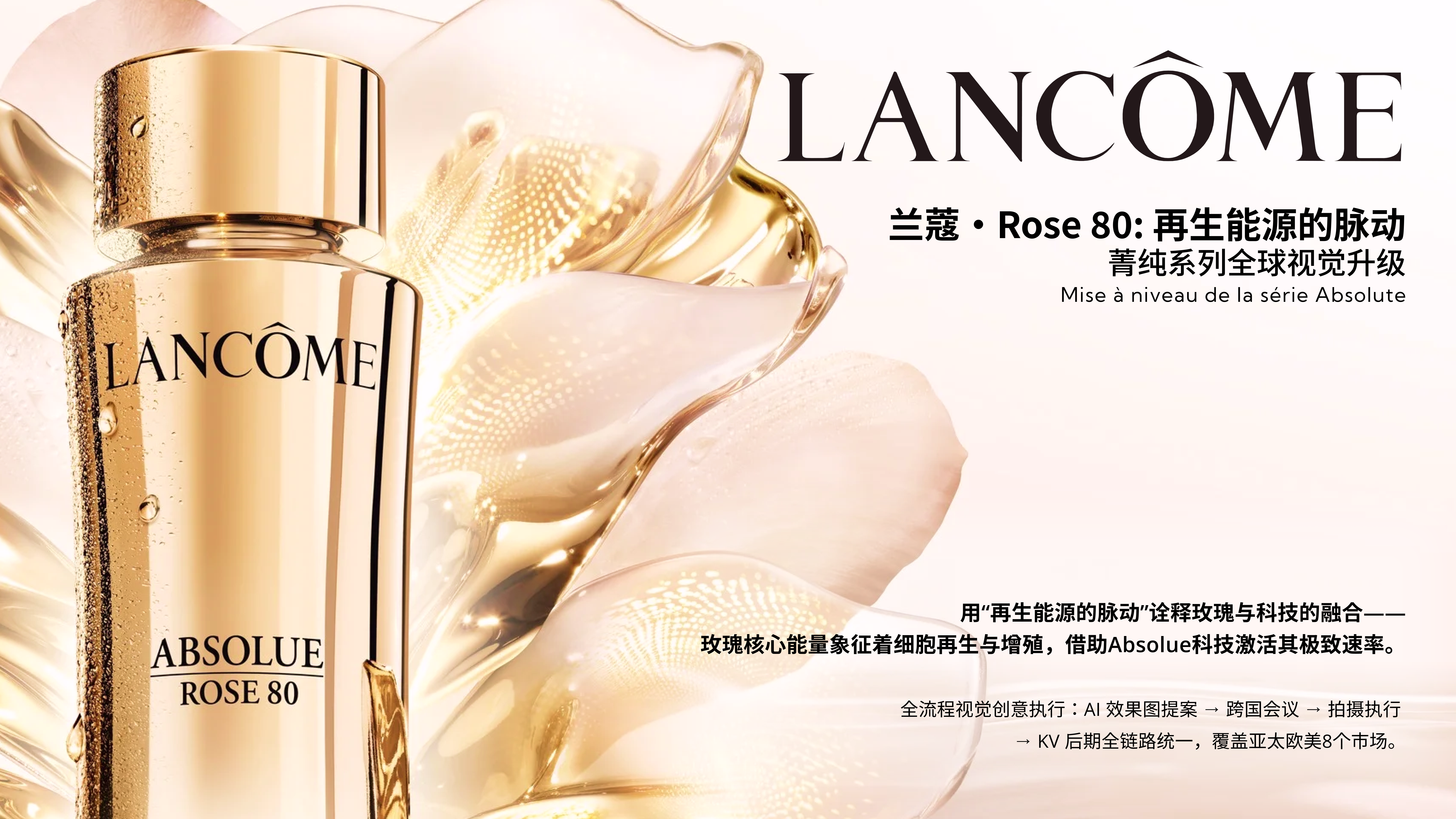 Diaphane Studio led the visual creative for Lancôme Absolue, built around the concept of “the pulse of regenerative energy,” translating the fusion of rose vitality and advanced technology into a refined visual expression. The project spanned the full creative pipeline, from AI concept development and global alignment to shoot execution and KV post-production, deployed across APAC, Europe, and North America.In collaboration with 3D production and cross-market feedback integration, the visual system was continuously refined, ensuring consistency while enhancing performance and audience perception. 透相设计主导 Lancôme 「Absolue」系列视觉创意项目,以“再生能源的脉动”为核心概念,诠释玫瑰能量与前沿科技的融合,构建更具感知力的品牌表达。 项目覆盖全流程视觉执行,从AI概念提案、跨国协同到拍摄与KV后期统一,形成完整视觉体系,并落地于亚太与欧美多市场。同时协同3D影像制作与多地区反馈整合,持续优化视觉方案与适配效率,在保证一致性的同时提升传播表现与用户感知。